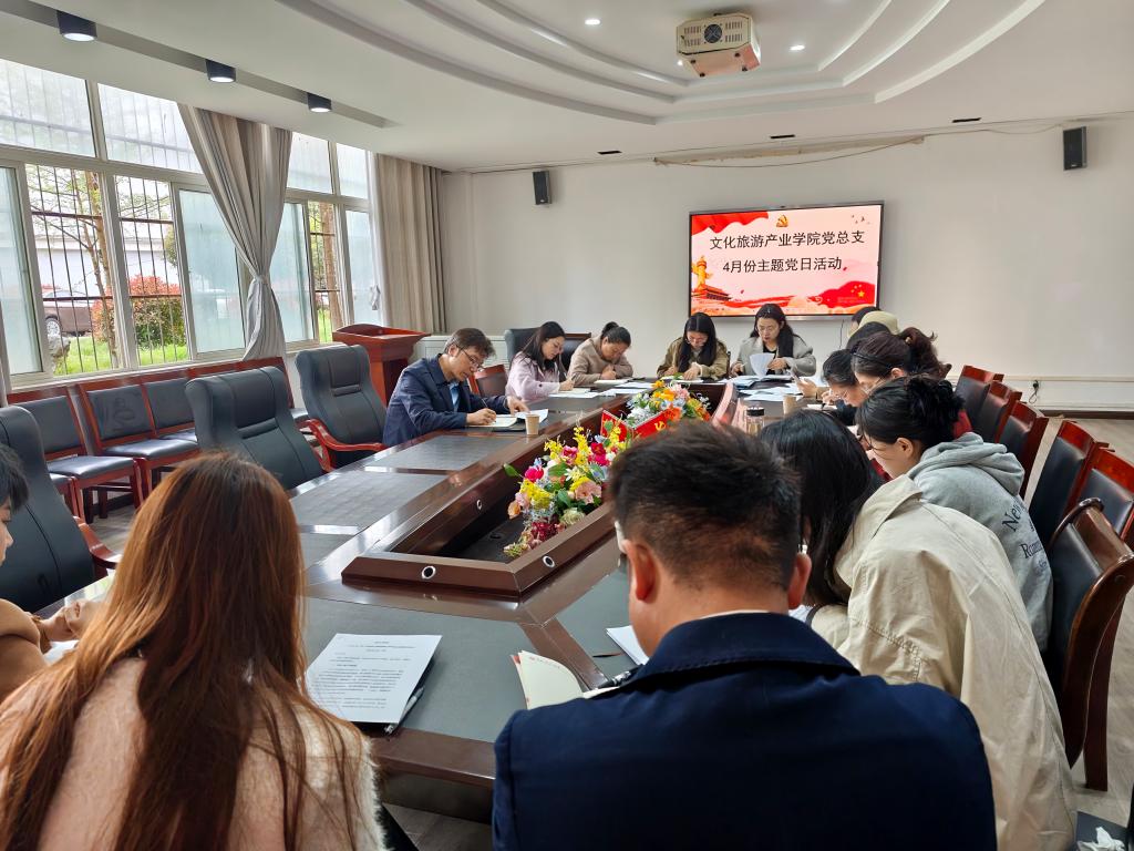 2026年4月3日,文化旅游产业学院党总支在党员活动室组织开展4月主题党日活动。