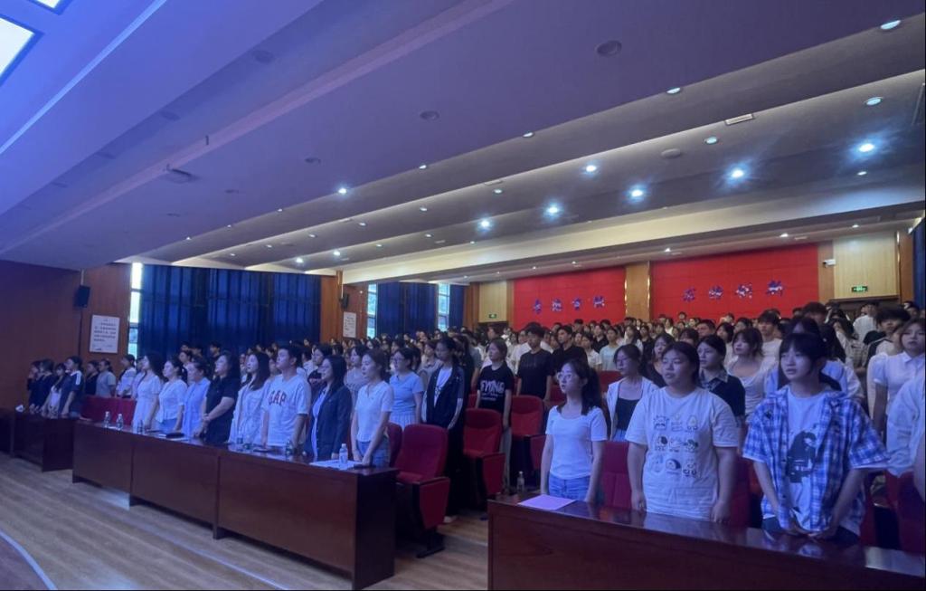 典礼伊始,全体人员起立奏唱国歌,庄重的旋律拉开开学典礼序幕。院长曾建平开场致辞,以“大鹏一日同风起”寄寓期许,鼓励新生在文旅领域开拓进取。新生代表李安琪发言饱含青春热忱,展现对大学生活的美好憧憬;新生辅导员靳颜羽以“小桔灯”为喻,满是关怀期许,彰显全院教师育人初心。