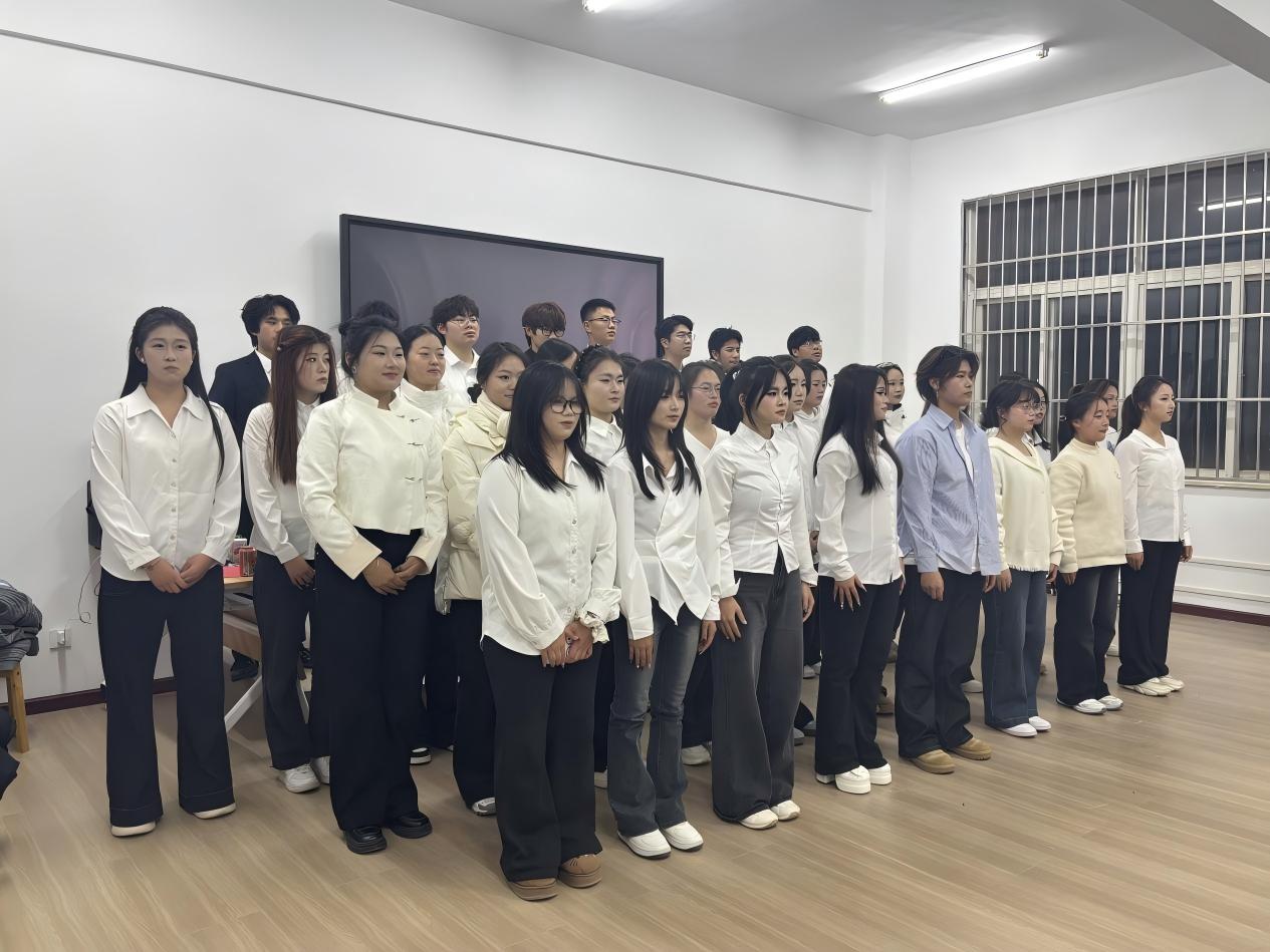 晚会以现代舞蹈拉开序幕,吉祥、李彤彤等同学用动感舞姿点燃全场氛围;诗歌朗诵《成为那一道光》中,李安琪、刘芷伊等人的深情演绎,将青年担当与时代温度融入字句,引得台下共鸣阵阵。双人合唱的婉转旋律、武术表演的刚劲舒展,轮番呈现多元风采;少数民族舞蹈的独特韵律、心理情景剧的细腻共情,更让舞台兼具艺术质感与情感厚度。王梦雪的独唱清亮动人,现代舞蹈的活力接续,最终以大合唱《篇章》收尾,全场师生齐唱,将晚会推向“以歌寄愿,共赴新章”的温情高潮。