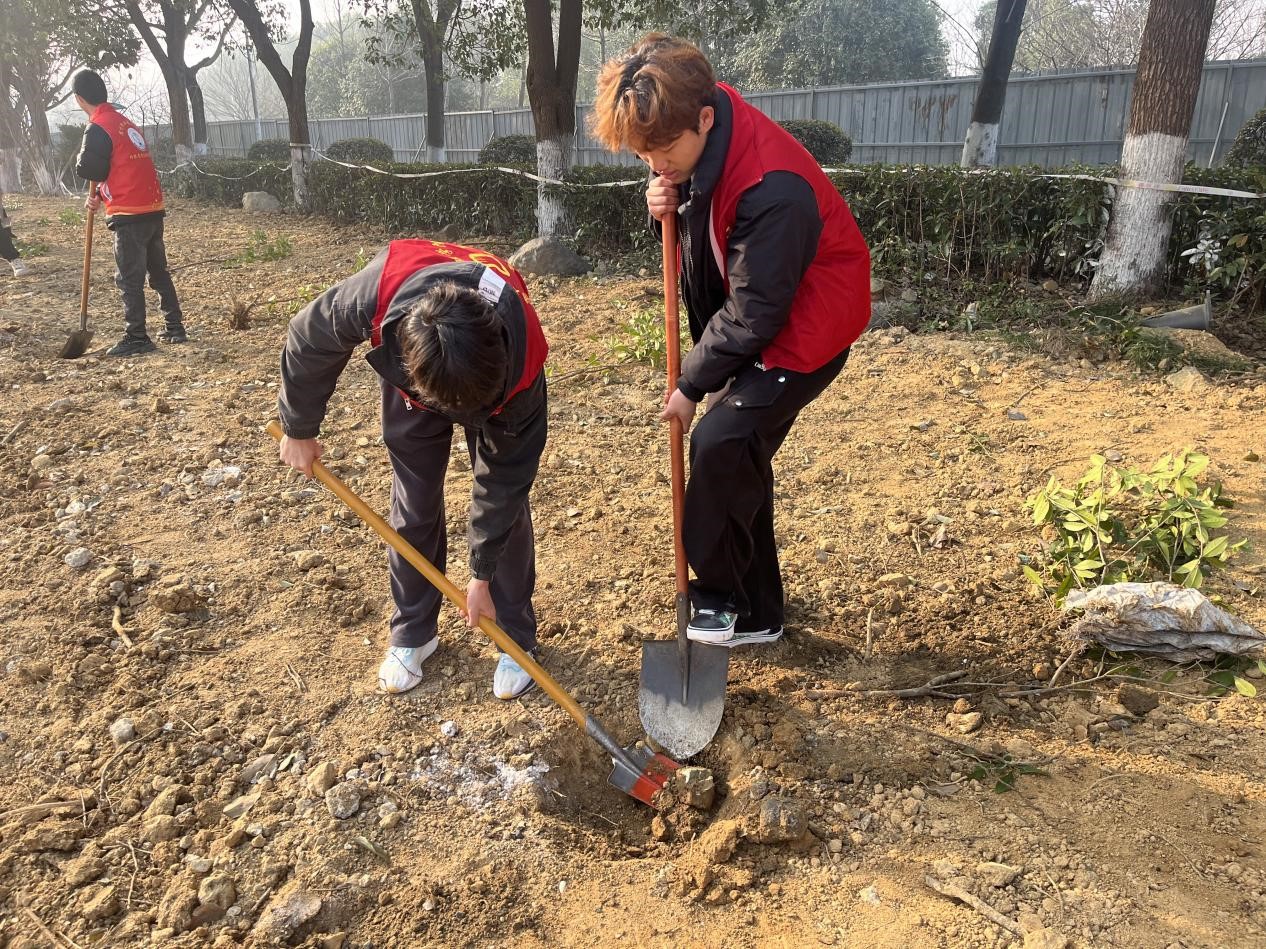 期间,志愿者们还主动向后勤服务中心绿化科老师学习植树技巧和苗木养护知识,互相交流经验,在劳动中体会奉献的快乐,在实践中深化生态保护意识。