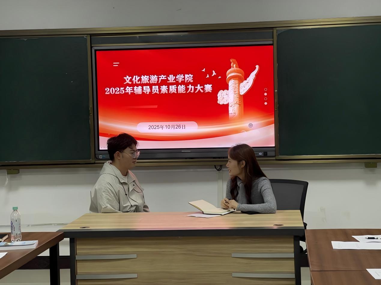 为夯实辅导员队伍理论功底与实践能力,选拔优秀选手备战学校决赛,10月26日,文化旅游产业学院2025年辅导员素质能力大赛初赛在霞客楼党团活动室、社区心理咨询室等场地顺利举行,全体辅导员参与本次考核。
