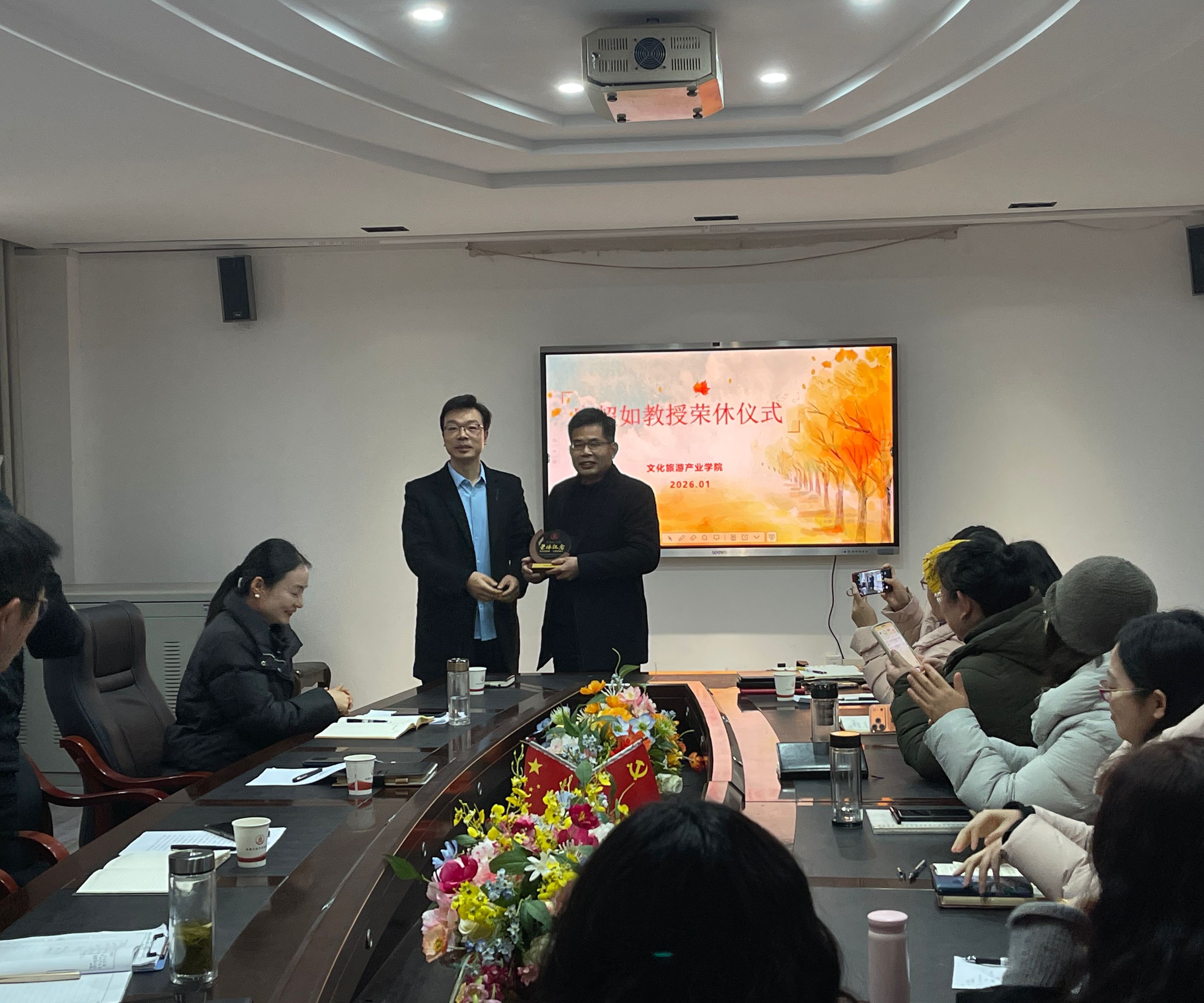 1月28日,文化旅游产业学院召开全体教职工大会,为廖超如教授举办荣休仪式。仪式由学院党总支书记黄兵主持。